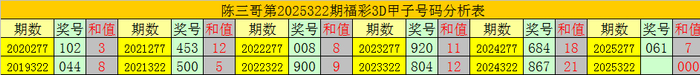 陈三哥3D第2025322期甲子号分析:
